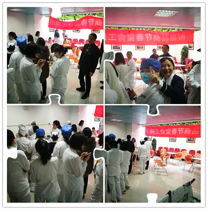 新春佳节将至,医院食堂为方便王府井部职工,于2月1日下午在王府井部地下职工活动中心举办了春节食品展销活动。