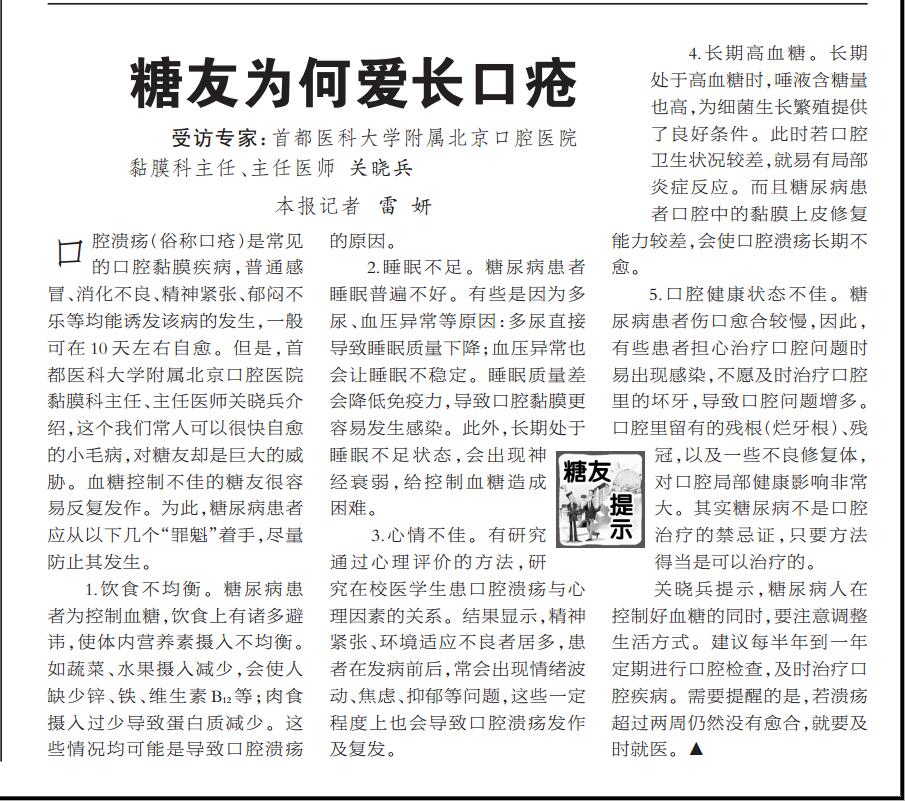 【生命时报】糖友为何爱长口疮(2019年12月17日 第16版)