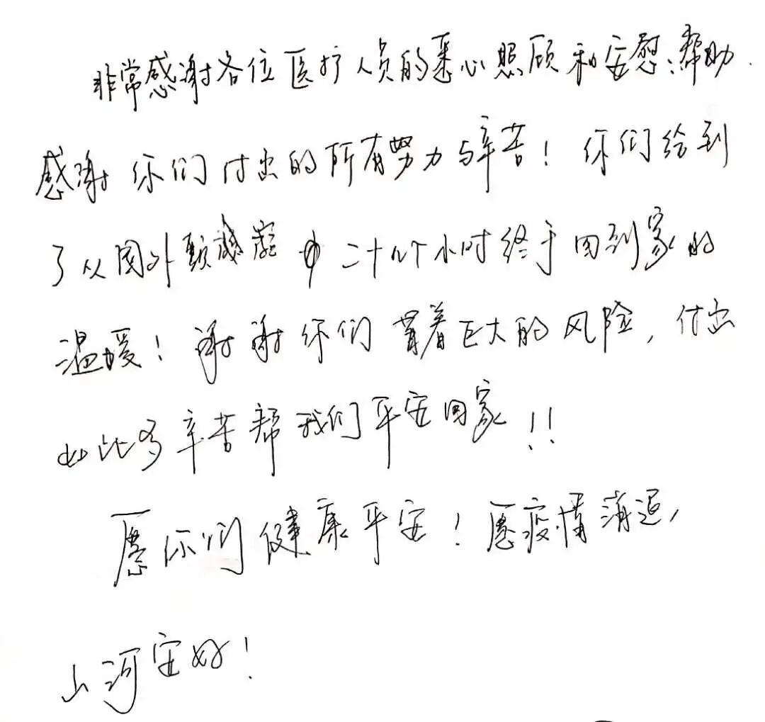 整理房间时,看到有的待筛查人员留下亲手写的信。简单的几句话透露出她们的感谢之情,心里暖暖哒。