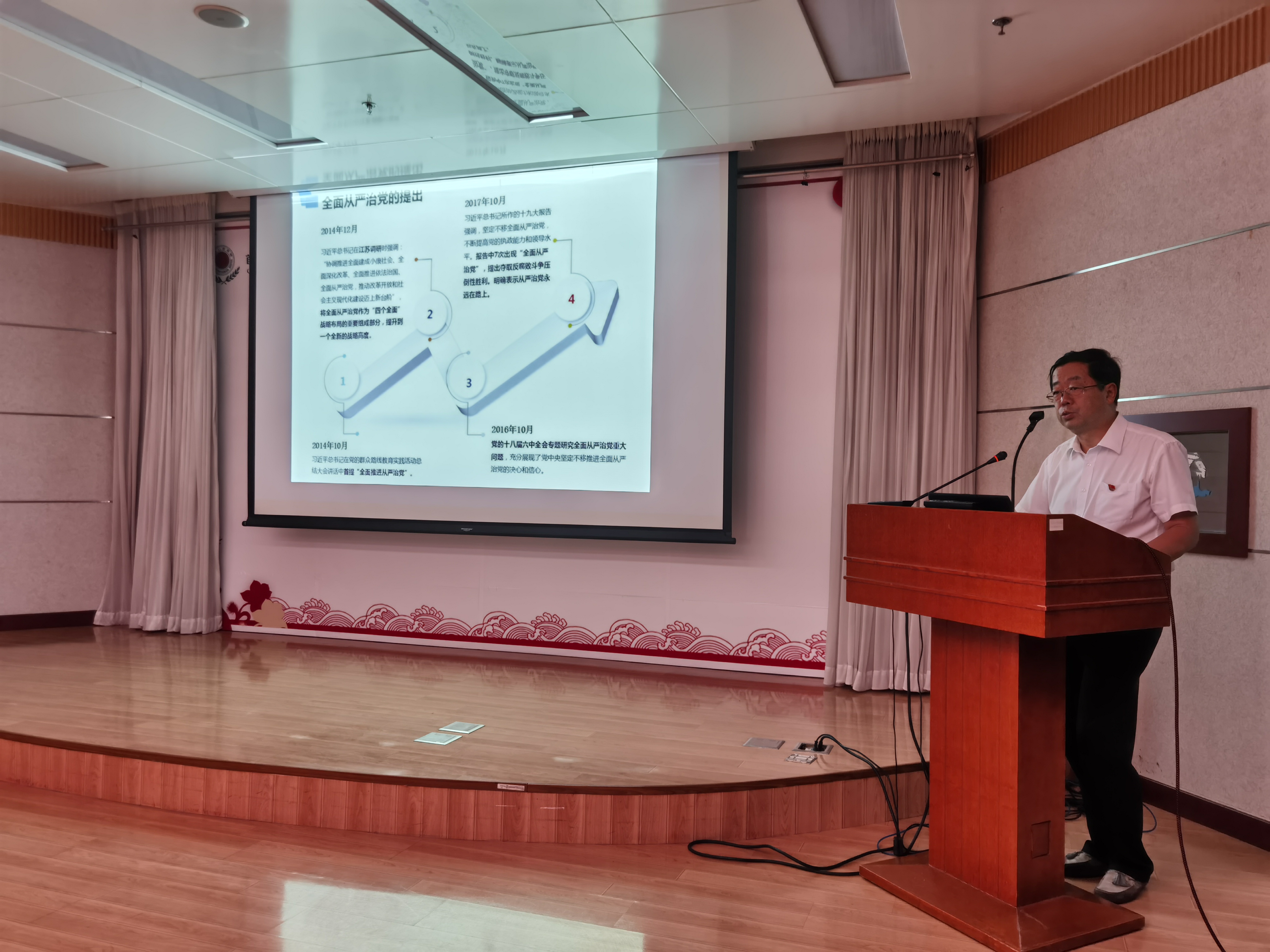 党委委员宋鹰分别从“全面从严治党的内涵意义、全面从严治党的基本内容、落实全面从严治党的新要求及守护人民口腔健康”等方面做了详细讲述。全面从严治党是党的十八大以来党中央作出的重大战略部署,是“四个全面”战略布局的重要组成部分,也是全面建成小康社会、全面深化改革、全面依法治国顺利推进的根本保证。全面从严治党,基础在全面,关键在严,要害在治。2017年10月,习近平总书记所作的十九大报告强调,坚定不移全面从严治党,不断提高党的执政能力和领导水平。报告中7次出现“全面从严治党”,提出夺取反腐败斗争压倒性胜利。明确表示从严治党永远在路上。2020年是国家全面建成小康社会和落实“十三五”发展规划的收官之年,是实现第一个百年奋斗目标的关键之年。党委委员宋鹰对全体党员提出了工作要求:维护好人民群众的口腔健康是我们每一个口腔医务人员的责任与使命。希望每位医护人员继续以满腔热情为患者服务,钻研医术,弘扬医德,为广大人民群众提供更高水平、更加满意的卫生和健康服务。