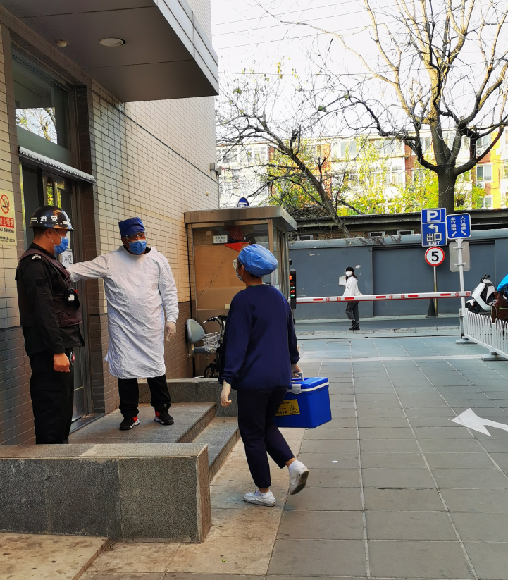 安保人员检测到“患者”体温为38℃后,暂时将“患者”带至医院门口观察点,经做好防护的预检分诊人员询问,发现其14天内有病例报告社区的旅行史。考虑到“患者”有活动性出血,预检分诊人员立即请安保人员联系急诊综合诊疗中心医生到观察点对“患者”进行初步会诊并告知发热情况,同时紧急通知门诊部、疾控处到现场。
