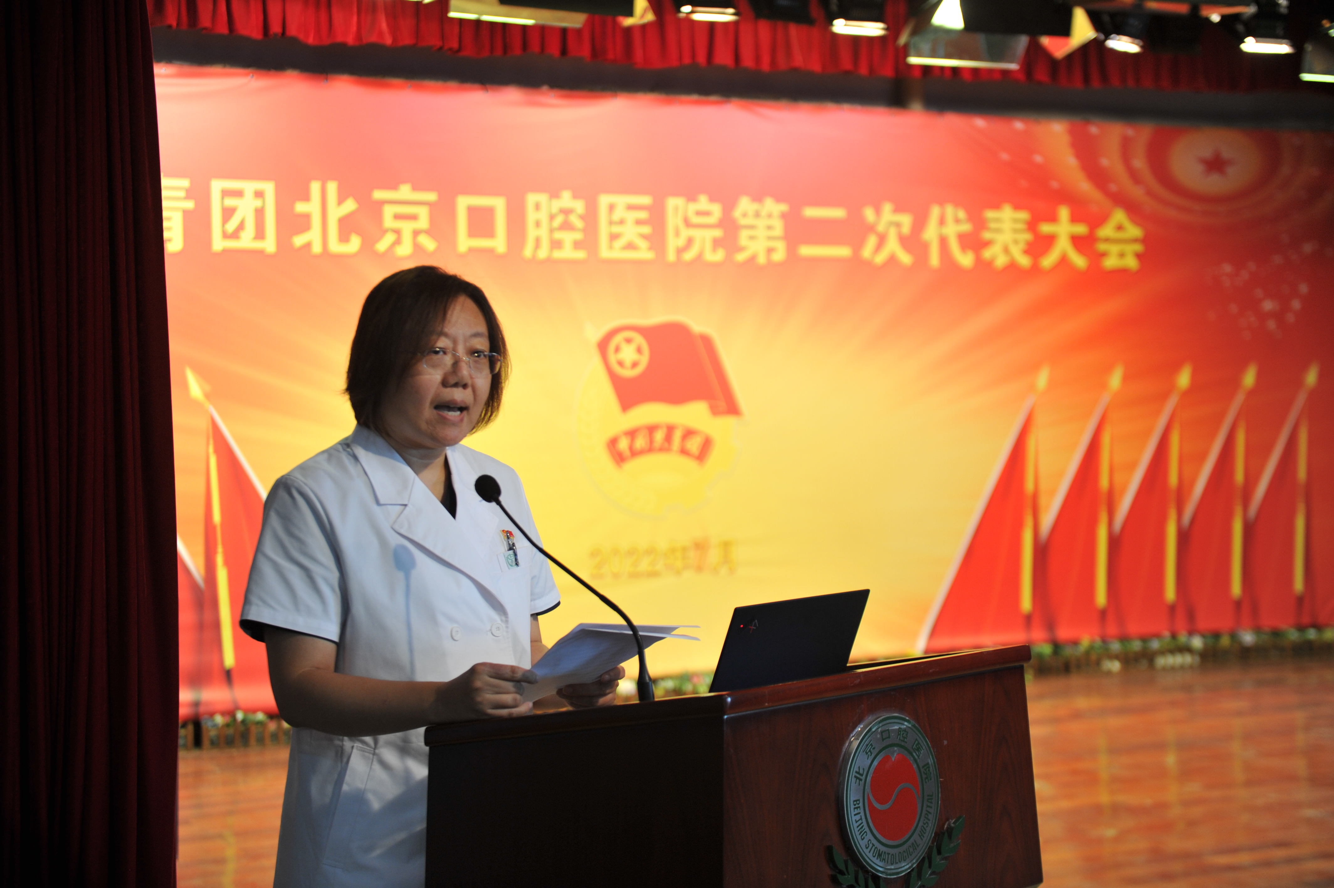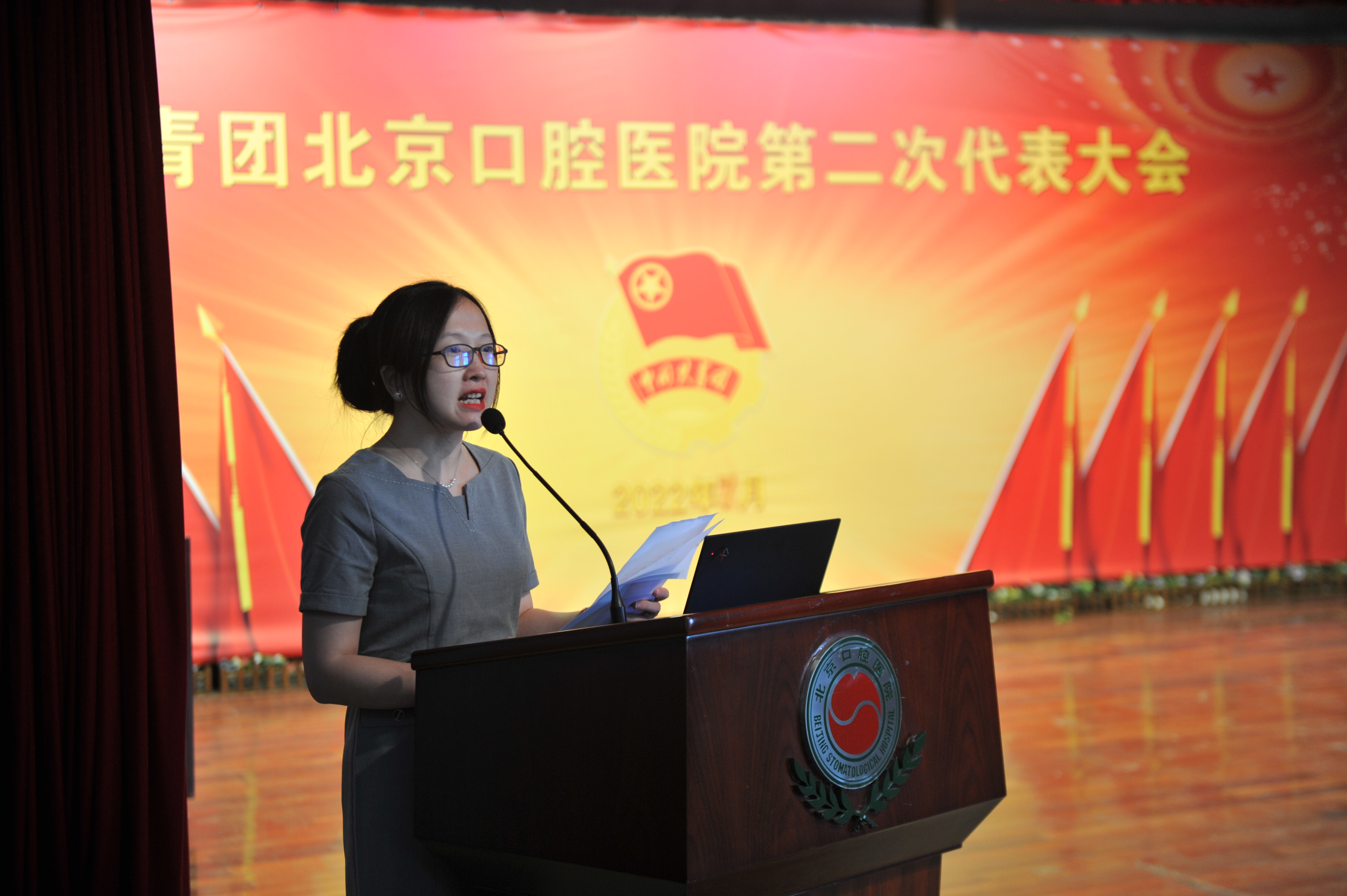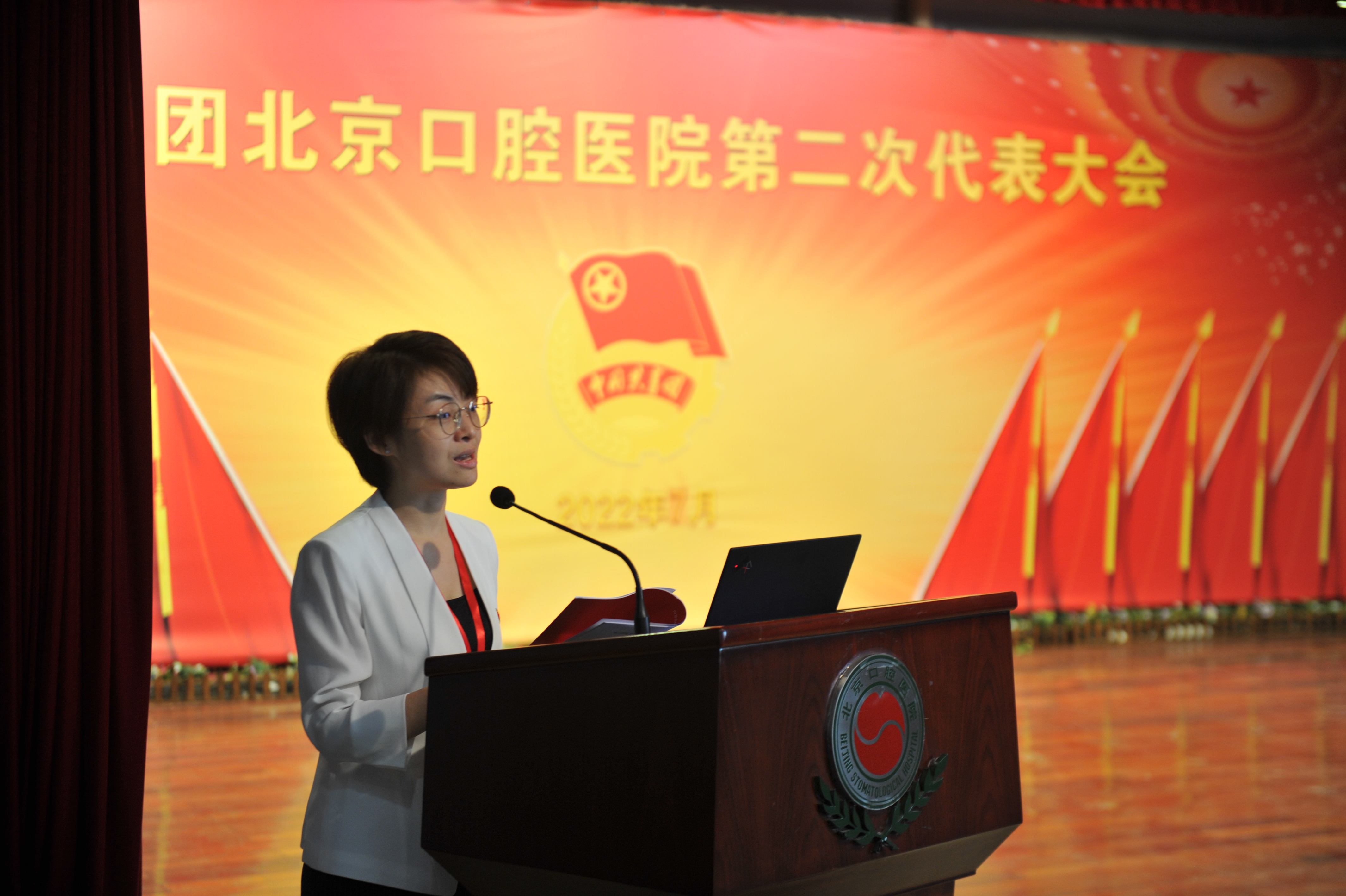 之后,北京市医院管理中心团委书记李欢同志讲话。她首先代表中心团委对北京口腔医院团代会的顺利召开表示热烈祝贺,向医院广大团员、青年们致以诚挚的问候。在讲话中,李欢书记充分肯定了北京口腔医院团委在市医院管理中心团委和院党委的领导下,紧紧围绕中心工作,在服务大局、服务社会、服务青年中所做出的积极贡献。并对医院今后的共青团工作提出了三点希望:一是要落实全面从严治团要求,切实保持和增强政治性、先进性、群众性,持续抓好团员青年的思想政治工作。二是要充分发挥党建带团建的作用,建立健全共青团工作制度,充分发挥团组织的引领凝聚作用。三是要根据时代的发展和青年日益多样化的需求,创新共青团工作的形式和载体。