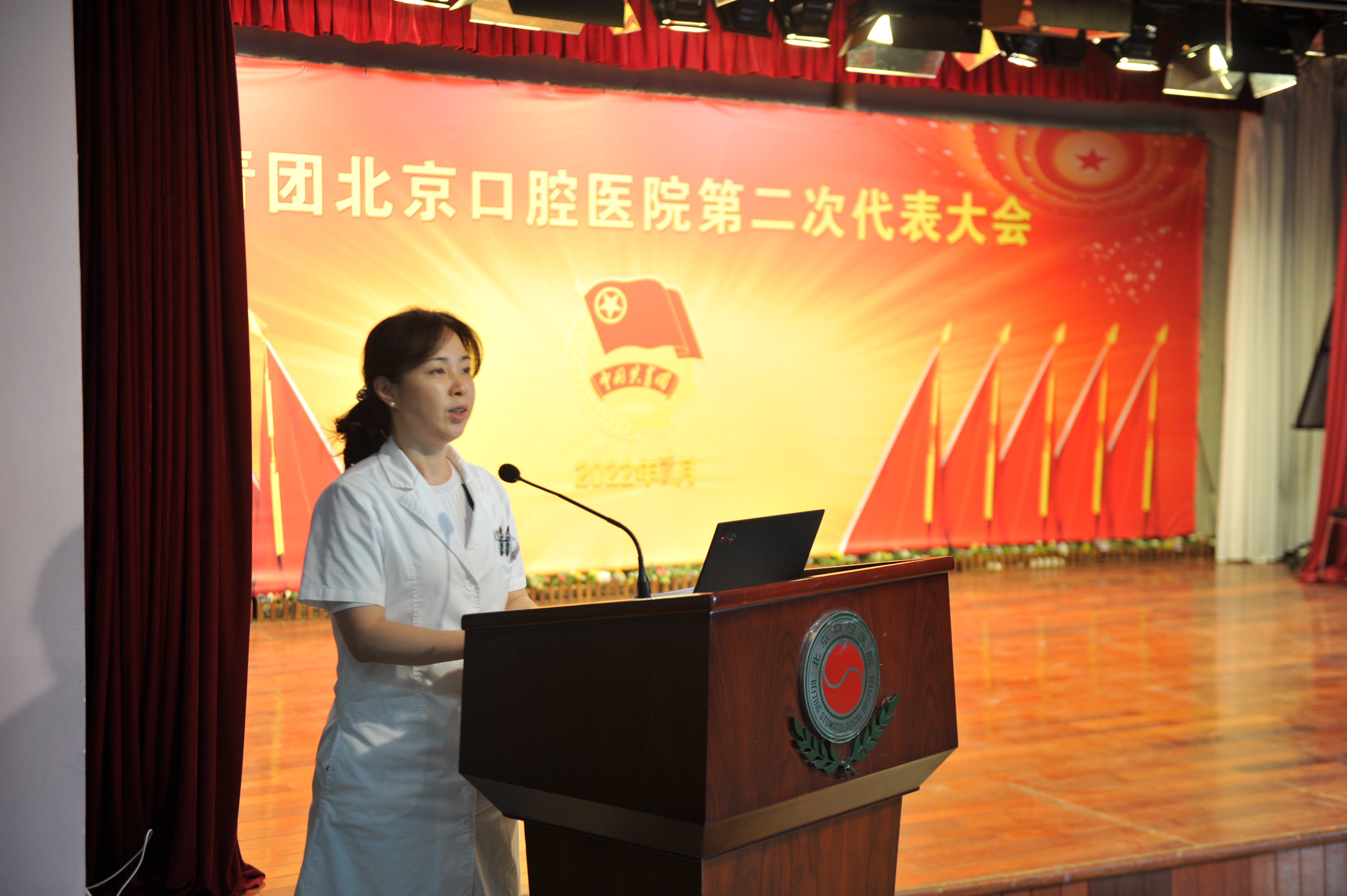 预备会和主席团会议结束后,在庄严的国歌声中,共青团北京口腔医院第二次代表大会隆重开幕。副院长杨凯同志致辞,她代表院工会向大会的召开表示热烈的祝贺。她说,近年来,院团委团结带领广大团员青年坚持服从服务大局,在新冠疫情防控工作、冬奥会冬残奥会保障工作以及深化医药卫生体制改革、改善医疗服务行动等重点工作中发挥了青年人的骨干作用,为北京口腔医院的发展做出了青春贡献。希望今天选举产生的新一届团委在不断深化公立医院高质量发展建设的新形势下,充分发挥广泛联系群众的优势,构建群团工作合力,努力工作,开拓创新,为北京口腔医院的发展再创辉煌!
