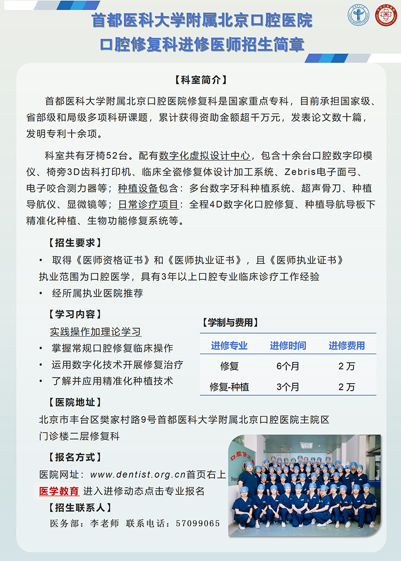 上一篇: 北京口腔医院急诊综合诊疗中心进修培训招生简章