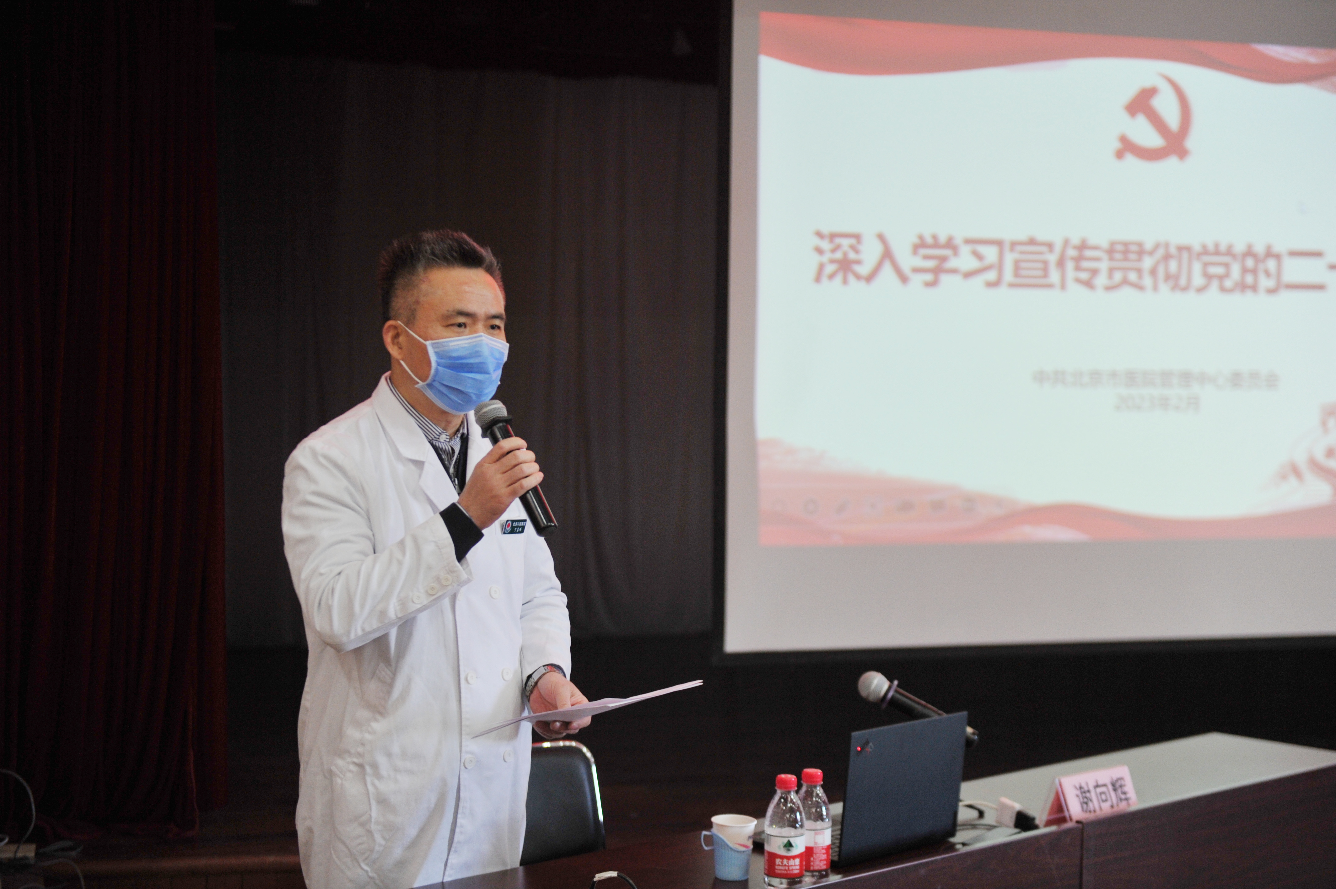 为深入学习贯彻党的二十大精神,团结带领党员干部群众切实把思想行动统一到党的二十大作出的各项决策部署上来,根据市医管中心党委的计划,2月13日上午,市医管中心党委常委、副主任谢向辉同志到我院作党的二十大精神专题宣讲,带领我院深入学习党的二十大精神。全体领导班子成员、中层干部等90余人参加宣讲会。