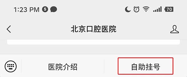 提示:现在我院预约挂号可从北京口腔医院微信公众号底部的“自助挂号”按钮直接进入小程序进行预约。