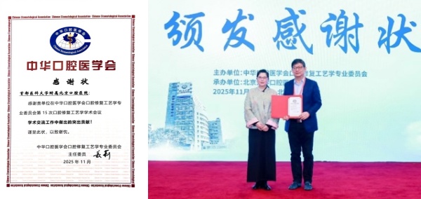 11月25-26日,中华口腔医学会修复工艺专委会召开第十五次学术会议。本次大会以“教育和数字化推动口腔修复工艺专业高质量发展”为主题,业内四十余家院校、义齿加工单位参加,修复工艺制作中心团队获得“学术突出贡献奖”。