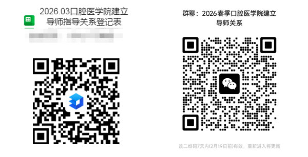 1、2026年2月27日下午16:00前填写以下意向登记表进行登记,同时扫下方二维码进入“2026春季口腔医学院建立导师关系”工作群,(如后续资料审核不合格,将被移出群聊)。
