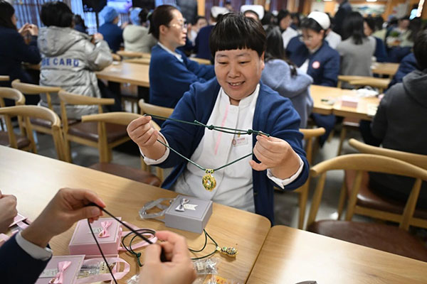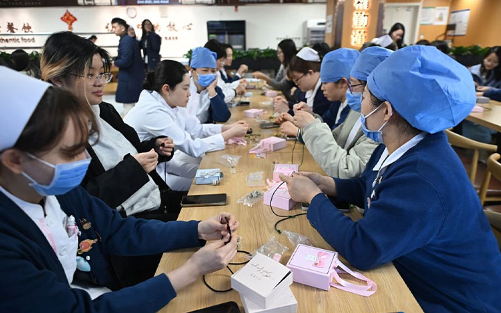 3月6日下午,手工制作活动中,党委书记丁枭伟代表院党委向辛勤工作在各个岗位的女同胞们致以节日的祝贺和崇高的敬意。他说,全体女职工以巾帼不让须眉的担当精神,守护生命、服务患者,是医院高质量发展不可或缺的中坚力量,在工作中发挥了不可替代的作用,希望大家继续坚守初心、爱岗敬业、绽放风采;医院将一如既往关心关爱女职工,希望大家在繁忙的工作之余放松身心,度过一个温馨、快乐的节日。
