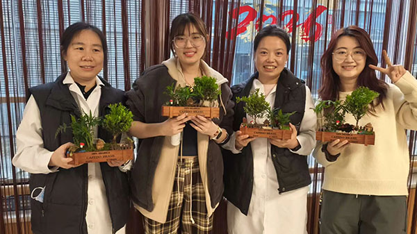 活动现场,在专业老师的指导下,女职工们发挥创意,将绿植与花盆、中药成分香珠与容器巧妙搭配,指尖流转间,一个个造型别致的随身香薰和生机盎然的造景植物逐渐成型。