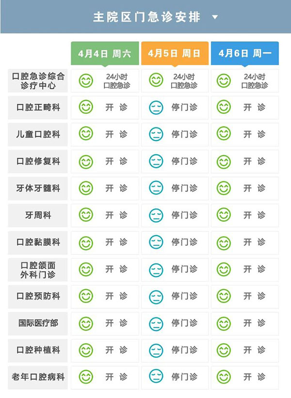 2026年清明节期间,北京口腔医院的门急诊安排如下,请广大患者朋友知晓~